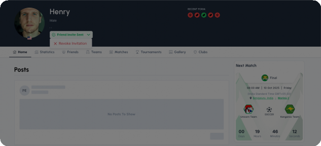 Your friends’ posts are shared with you.(This includes feeds on match/tournament-winning performances & match schedules).