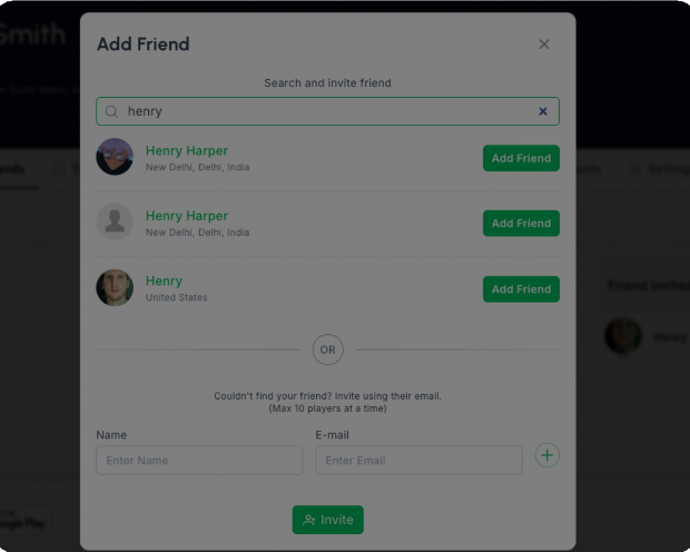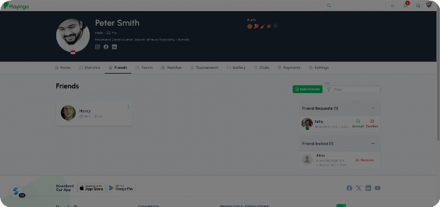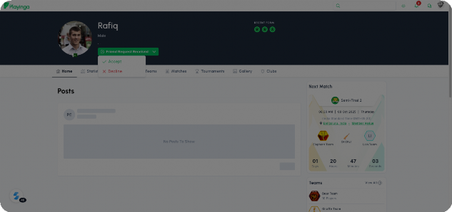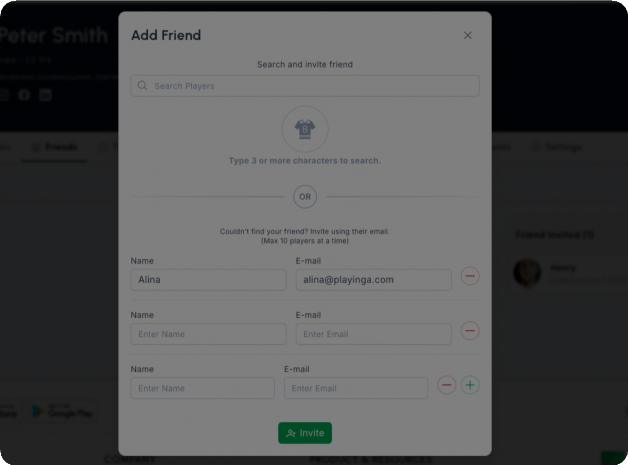 If a player emailID you provided is already registered with Playinga, then a friend request will be sent to the player. He/she can Accept/Reject the request received.