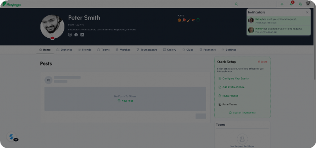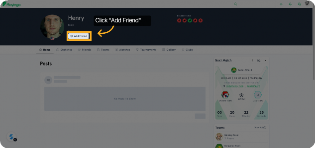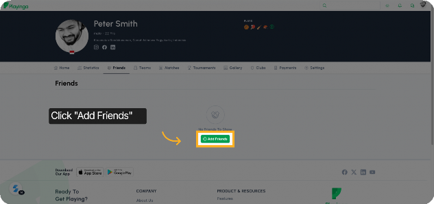 Adding friends on PLAYINGA is a simple way to maximize your chances of playing and sharing your special sporting moments ( Add Friends). All your posts on your timeline and scheduled match feed get shared with your friends in their feeds. Also while participating in any Doubles format game, you can only choose one of your friends as a partner.