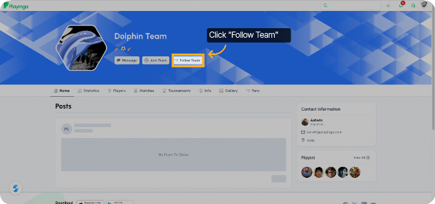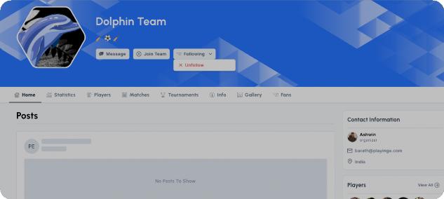 Note: Players of a team are automatically informed of team updates. Hence if you are already a player in a team you will not have the ability to follow the team. And if you become a player of the team you were previously following, you will be removed as a follower of the team and be added as a player. So you can either be a Follower of a team or a Player of the team.