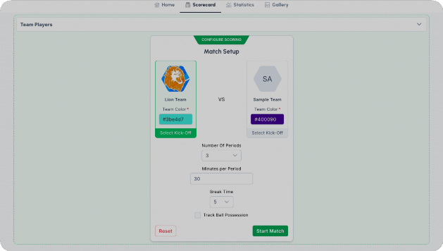 Once all settings are configured, click the ‘Start Match’ button to begin live scoring.