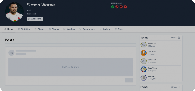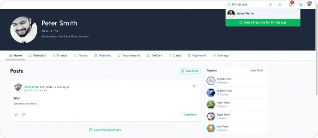 With PLAYINGA’s search feature, you can easily locate pages of friends, people you know or iconic players who are on PLAYINGA. Even pages of teams, matches and tournaments are just a few keywords and a click away.