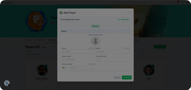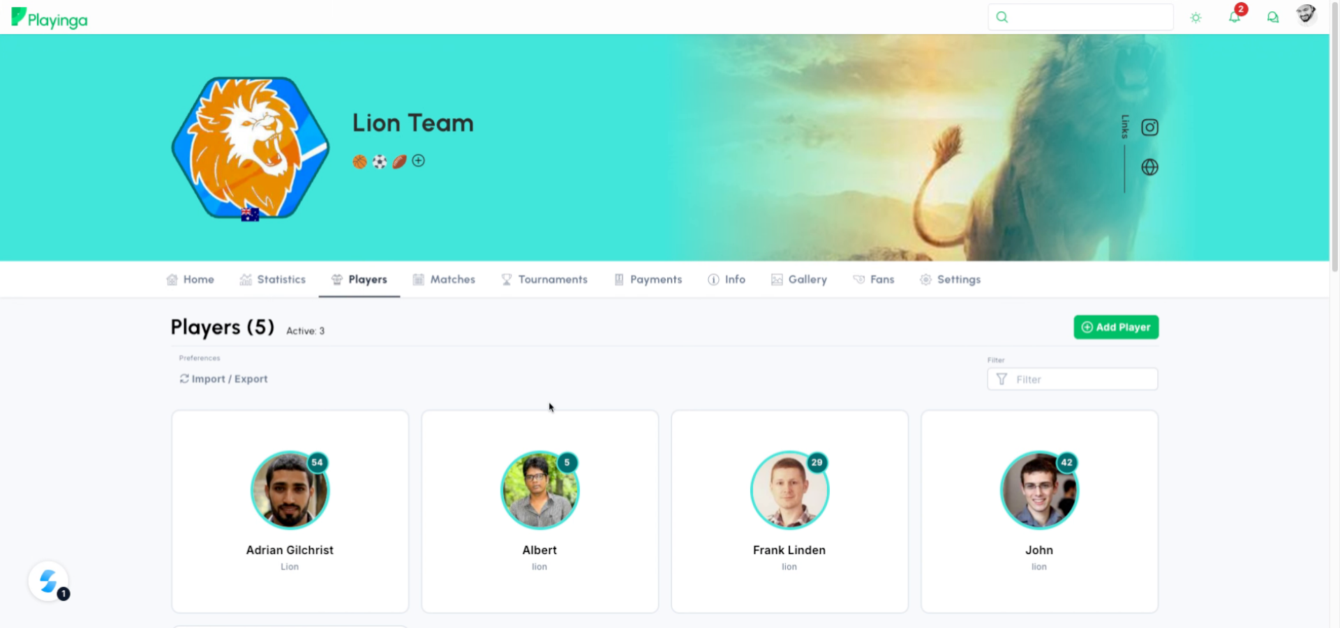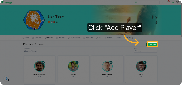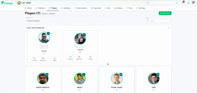 Once you create a team on Playinga, you could add players to it directly by sending invites to join the team as well as accept enrollment from players who wish to join your team.