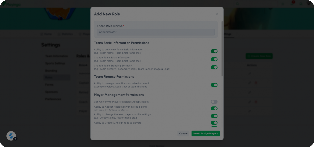 Step 2: Read what all an admin can do and click the "Next: Assign Players" button.