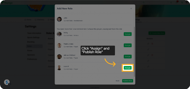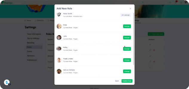 Step 4: Click on publish role button. The assigned player will now be retired.