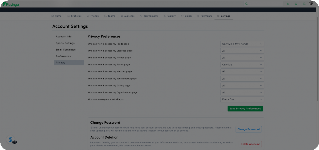 Setting up your profile page is just fun and attractive in Playinga. You can edit your player profile settings any time.